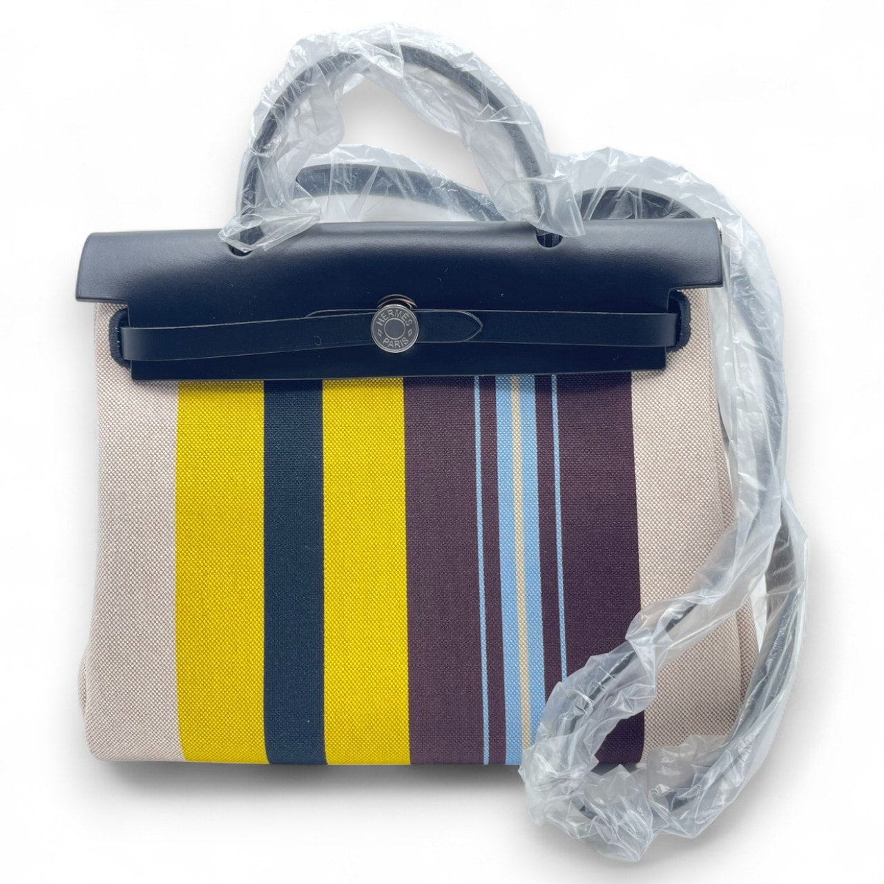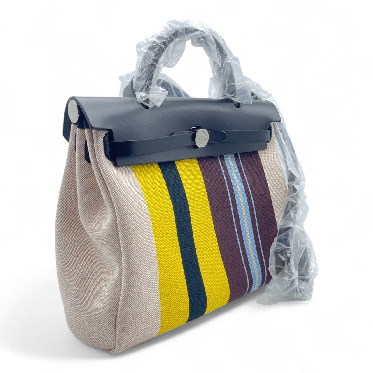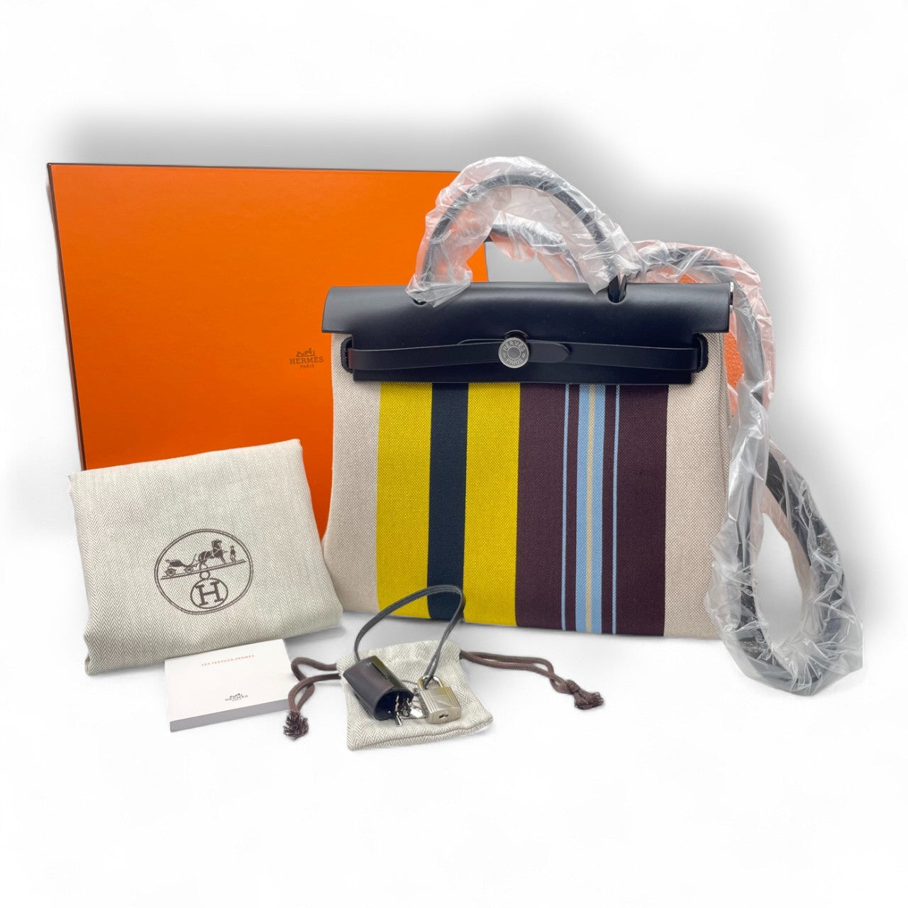 중고 에르메스 에일 백 지퍼 31 PM Rayule Noir/Ecru/Bordeaux/Jaune Toile Ash Plume/Vache Hunter 실버 하드웨어 W 각인