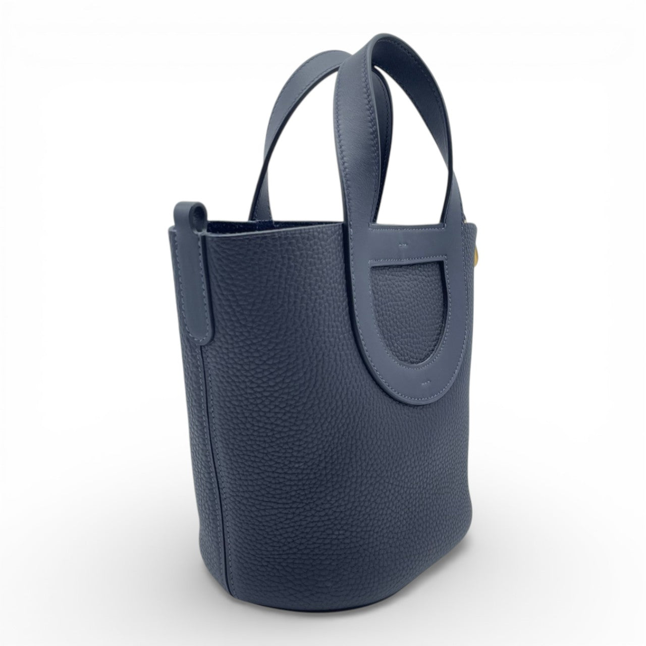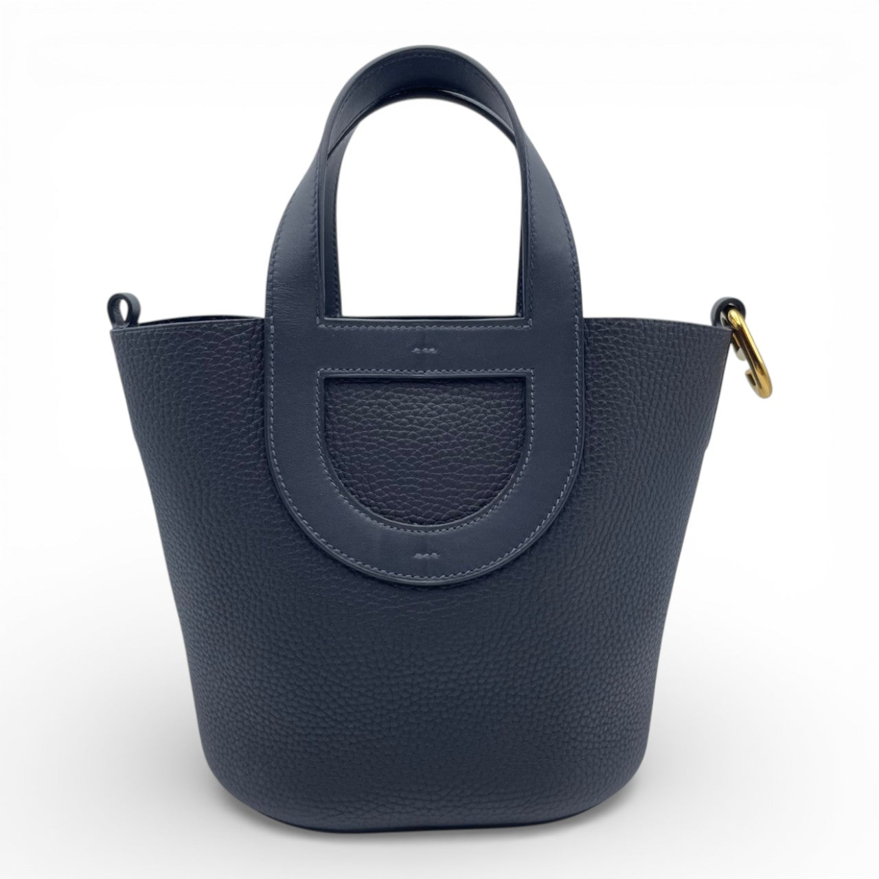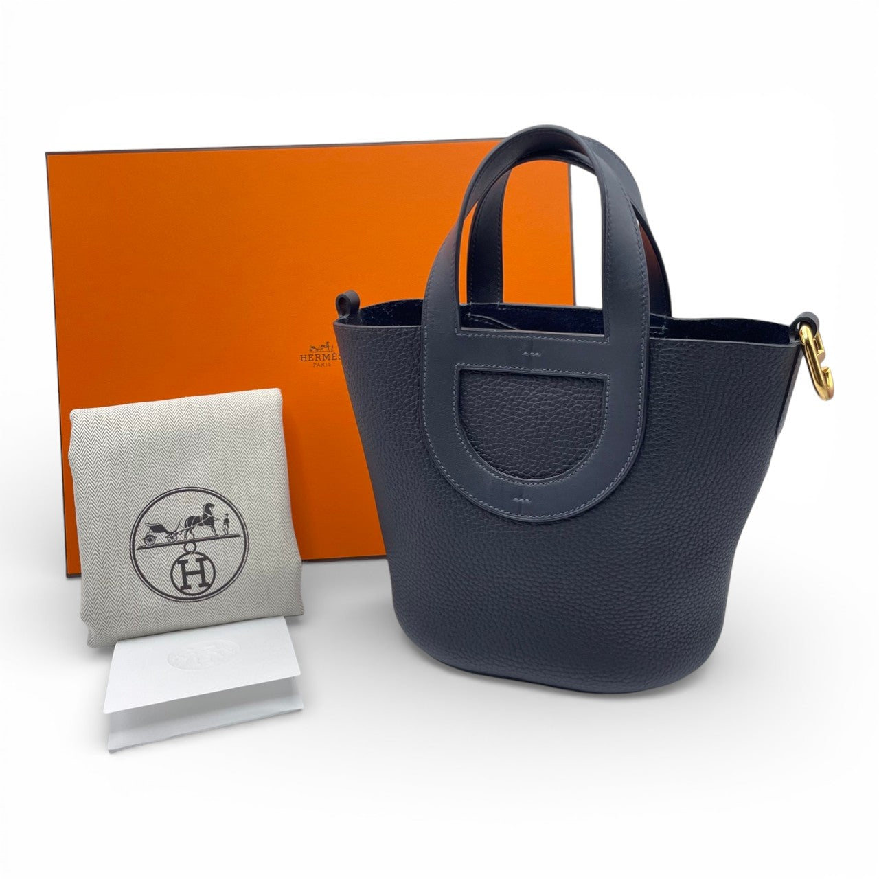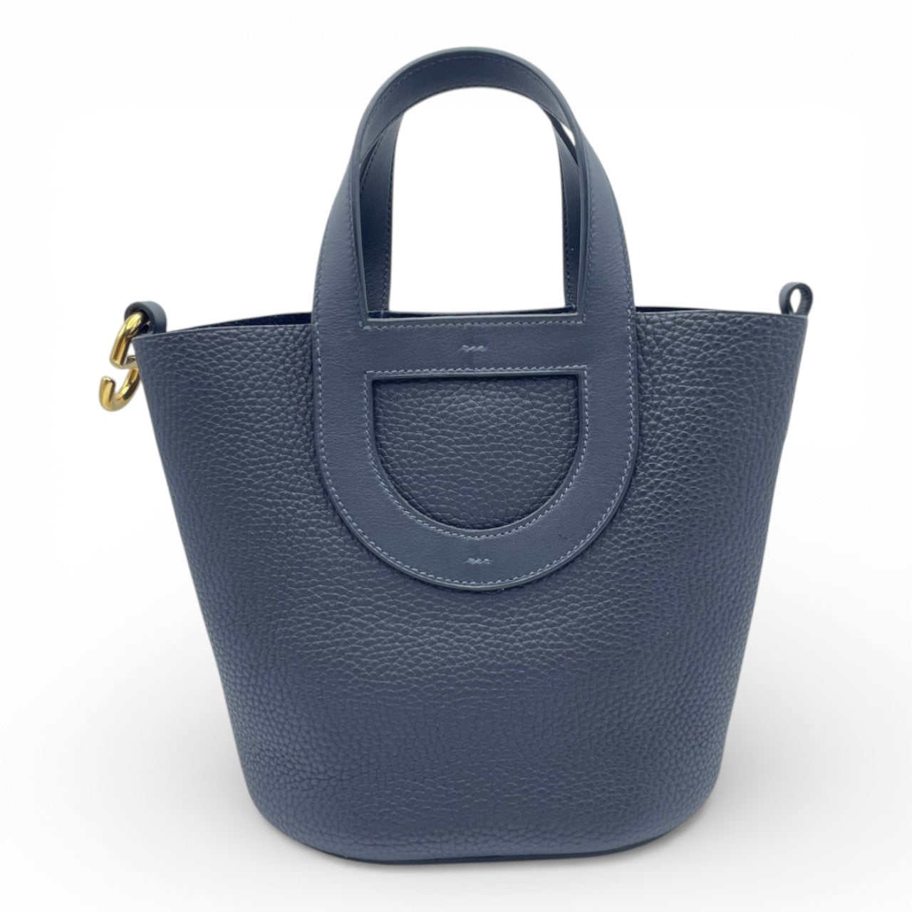 エルメス「インザループ」は、洗練された女性の日常にさりげない気品を添えるコンパクトバッグです。しっとりと柔らかなトリヨンクレマンスに、上品なブルー系カラー「ブルーニュイ」が映え、カジュアルからきれいめスタイルまで幅広く活躍します。手元に収まる程よいサイズ感ながら、必要なものはしっかり収納できる実用性も魅力。憧れのエルメスをスマートに取り入れたい方におすすめの一点です。