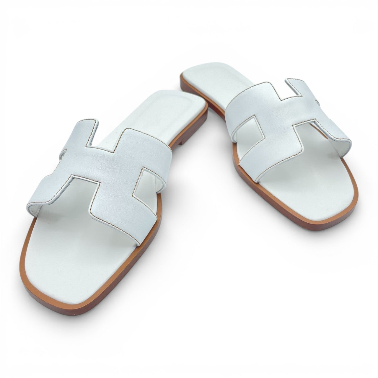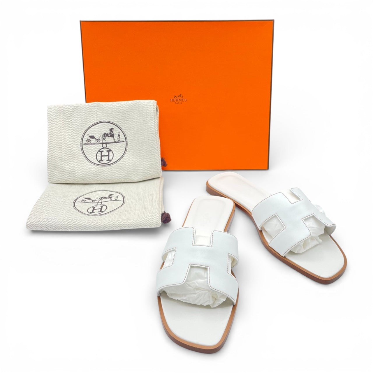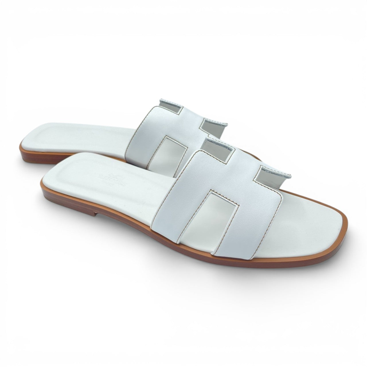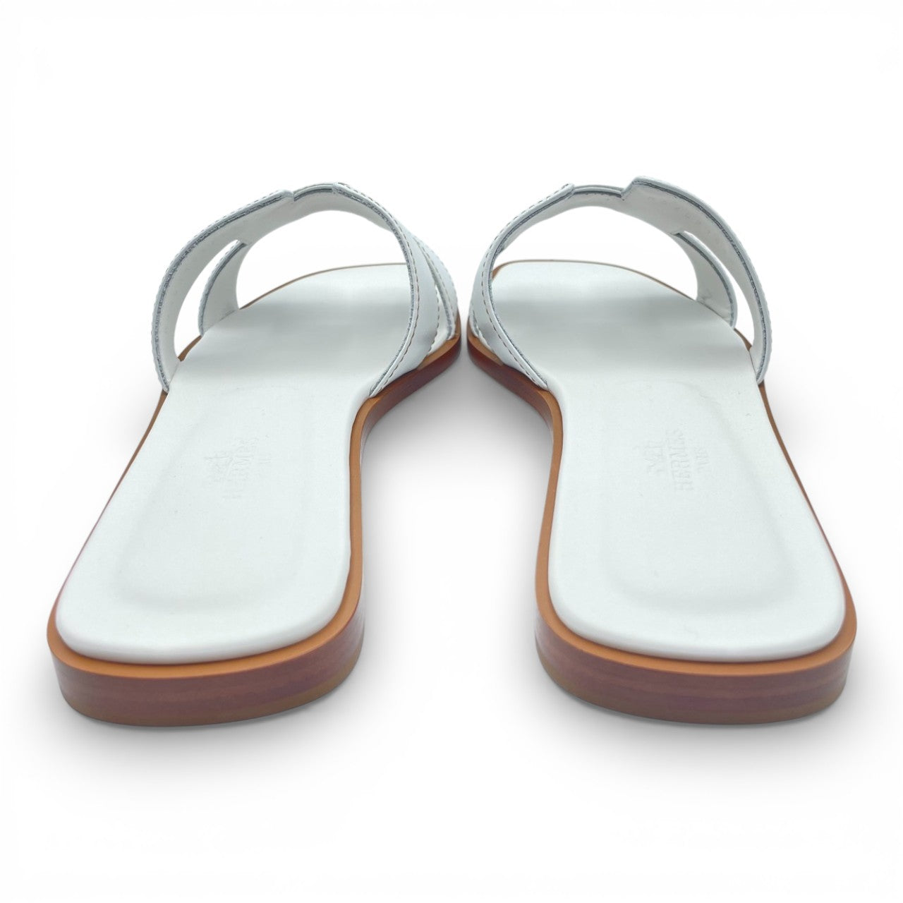 エルメスを代表する定番サンダル「オラン」。アイコニックなHモチーフが足元をさりげなく主張し、ラフなスタイルにもエレガントな装いにも溶け込む一足です。色味はどんなコーディネートにも合わせやすいホワイト色「ブラン」。デニムやワンピース、リゾートスタイルから都会的なジャケットスタイルまで、男女問わず洗練された抜け感を演出します。フラットで歩きやすく、デイリーにも旅先にも活躍。シンプルだからこそ、上質さとセンスが際立つ逸品です。