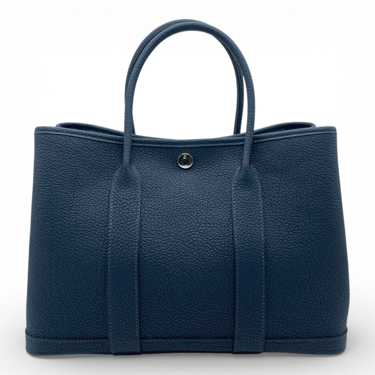 エルメスの名品トート「ガーデンパーティー」。しなやかなネゴンダ素材ならではの柔らかな質感と、傷が目立ちにくい実用性を兼ね備えた一品です。落ち着きのあるブルードプリュスは、デニムやモノトーンスタイルとも相性抜群で、オン・オフどちらのシーンにも上品に溶け込みます。普段使いしやすいTPMサイズは、長財布やポーチ、タブレットなど必需品がきちんと収まる理想的なバランス。エルメス初心者の方にも、すでにお持ちの方の2点目にもおすすめできる、永くご愛用いただけるタイムレスなバッグです。