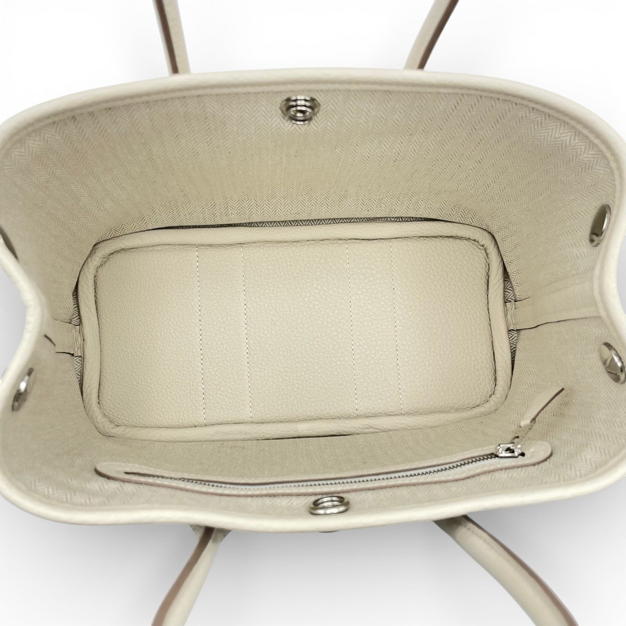 エルメスの新アイコンとして注目を集める「ネオガーデンパーティー」。上質なトゴ素材に、柔らかなニュアンスのクレカラーが映える、気品と抜け感を併せ持つ一点です。TTPMサイズは、最小限の荷物で軽やかにお出かけしたい日常からドレスアップシーンまで幅広く活躍。端正なフォルムにさりげないモダンさを宿したデザインは、流行に左右されず長くお持ちいただけます。初めてのエルメスにも、ワードローブを格上げする2本目・3本目のバッグにもおすすめの逸品です。