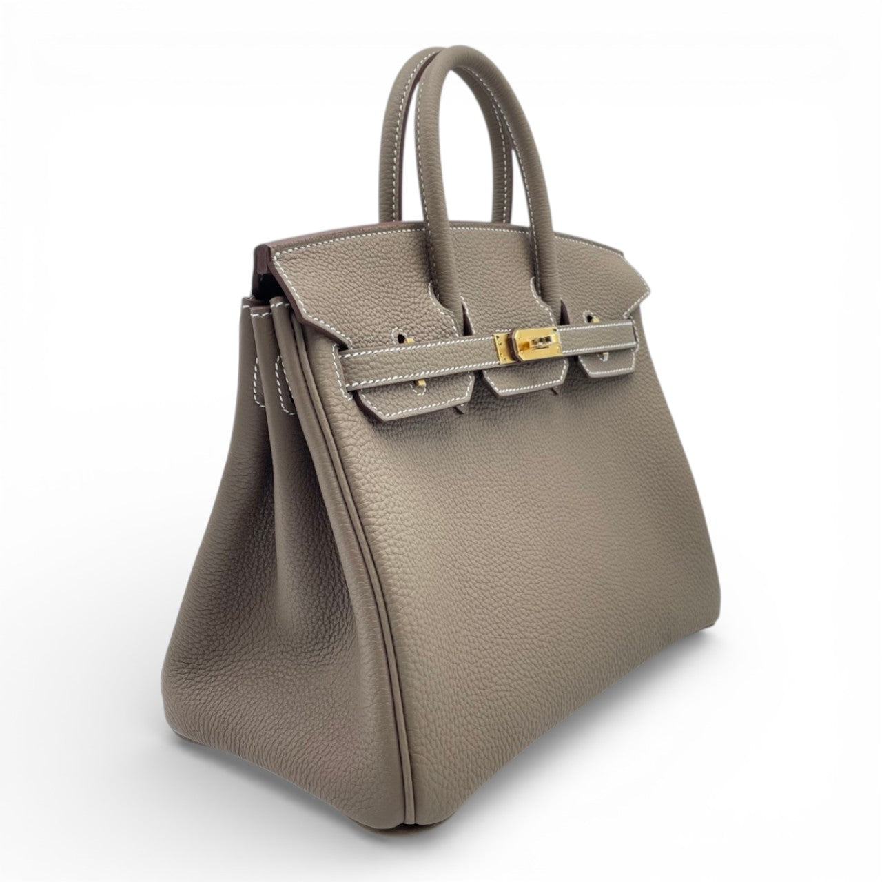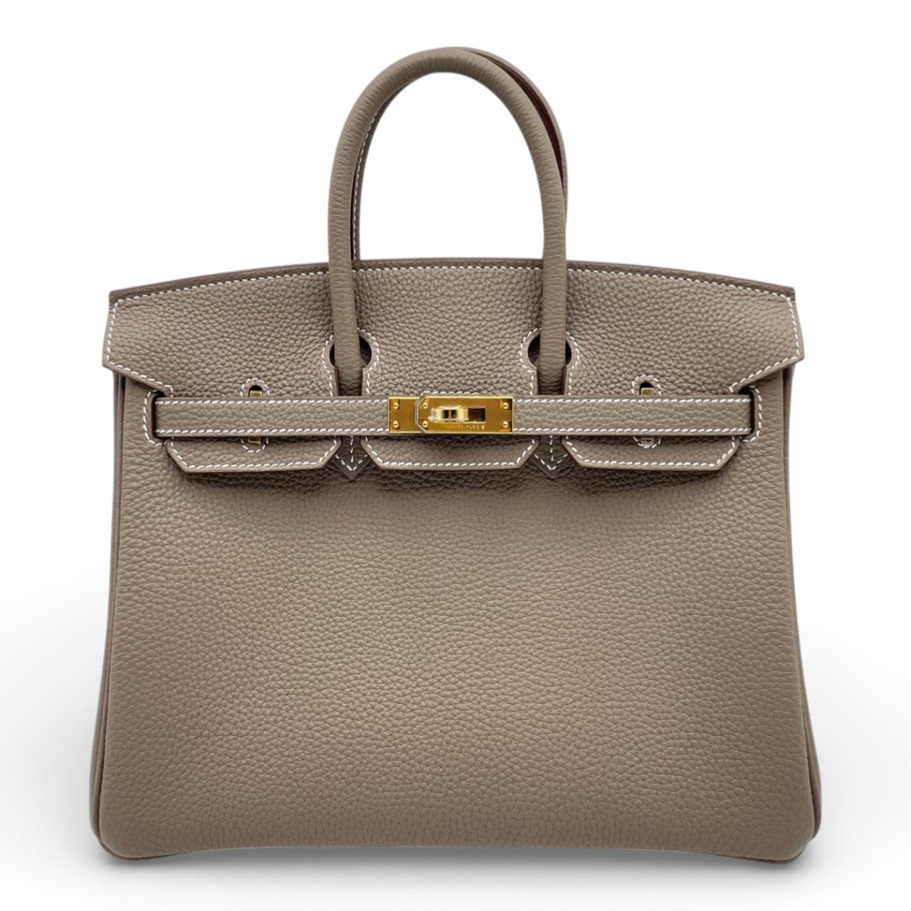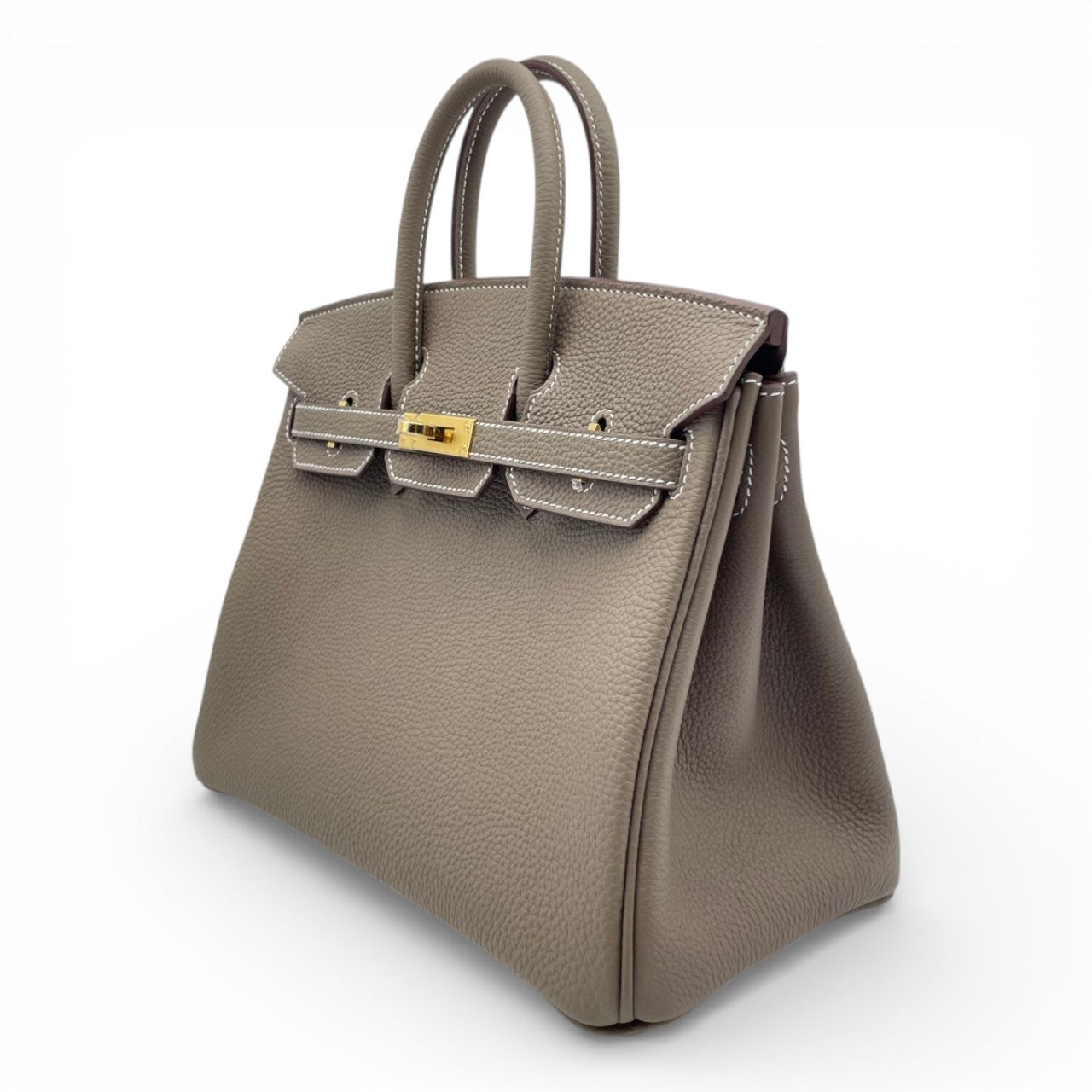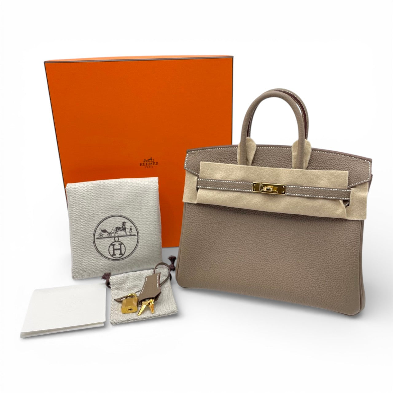 エルメスの永遠のアイコン「バーキン」。上品なグレージュトーンのエトゥープは、どんなスタイルにも馴染みつつ、さりげない存在感を放つ大人気カラーです。細かなシボが魅力のトゴ素材は、傷がつきにくく普段使いにも最適。コンパクトな25サイズはドレスアップにもデイリーにもバランス良く持てる絶妙なサイズ感で、初めてのバーキンにもコレクションの一本にもふさわしい一本です。