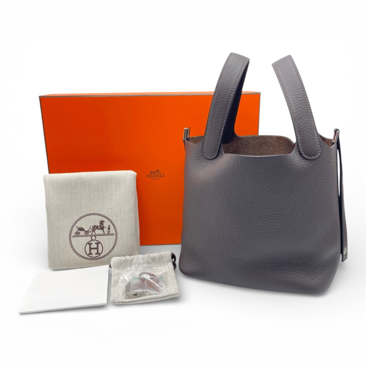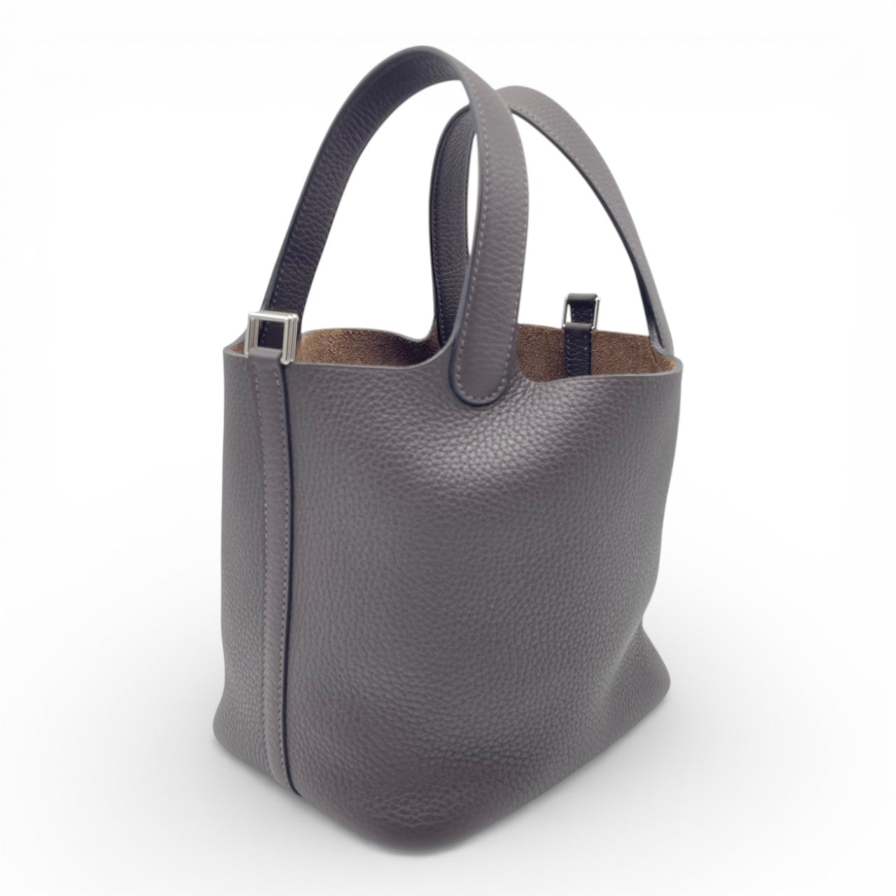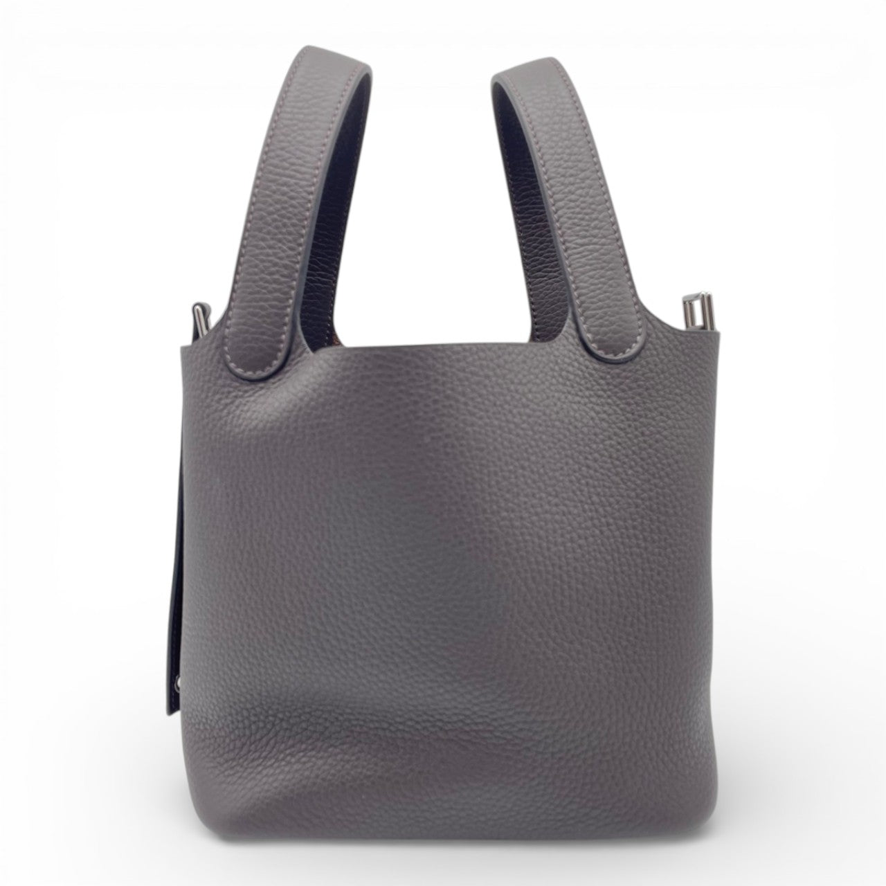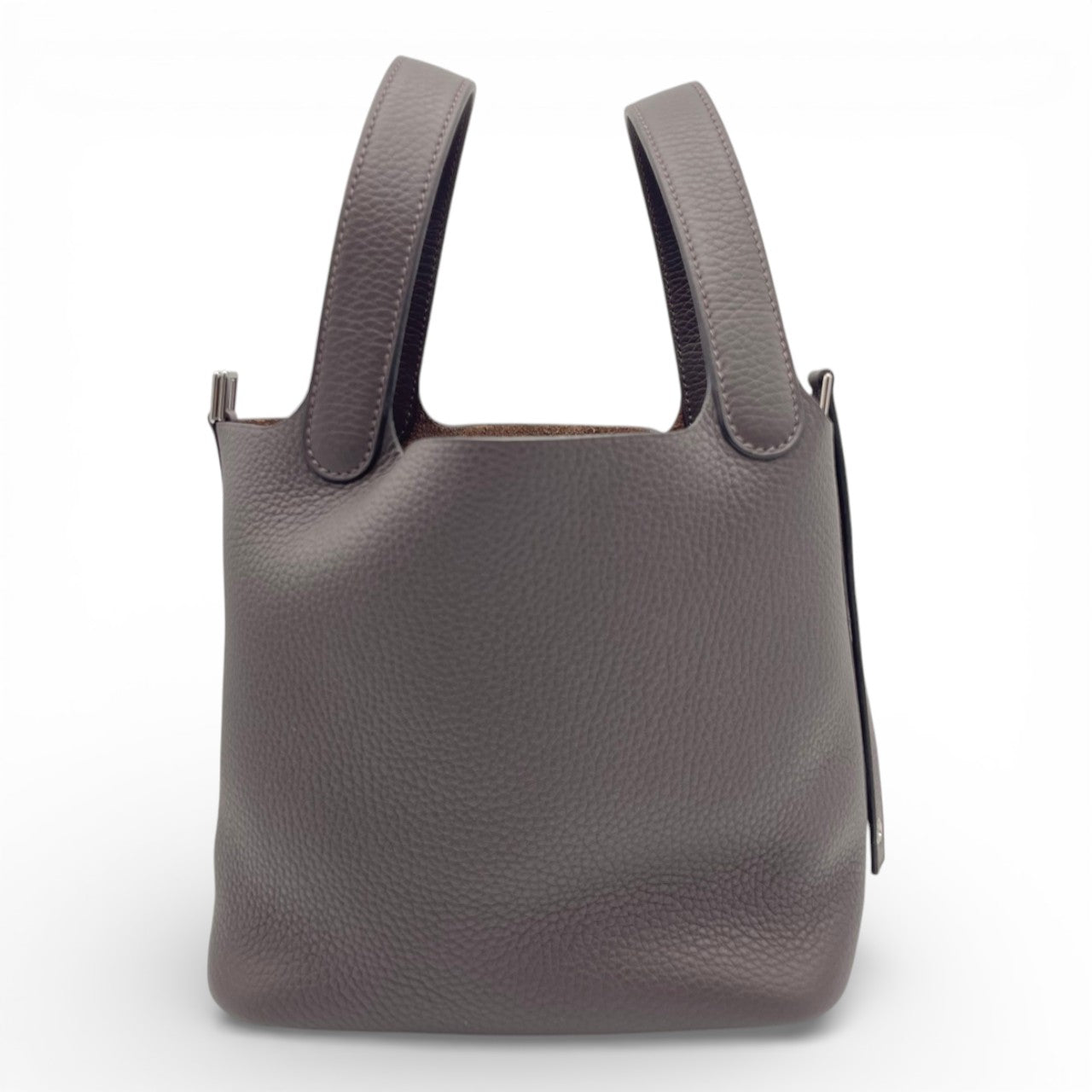 エルメスを代表する大人気バッグ「ピコタンロック」。柔らかなトリヨンクレマンスに、深みのあるエベンヌが上品に映える、永くご愛用いただけるお色味です。コンパクトながらお財布やスマートフォン、ポーチなど必需品がしっかり収まり、デイリーからきれいめスタイルまで幅広く活躍。ハンドルを腕に掛けるだけで、さりげなくエルメスらしいエレガンスを纏える一本です。