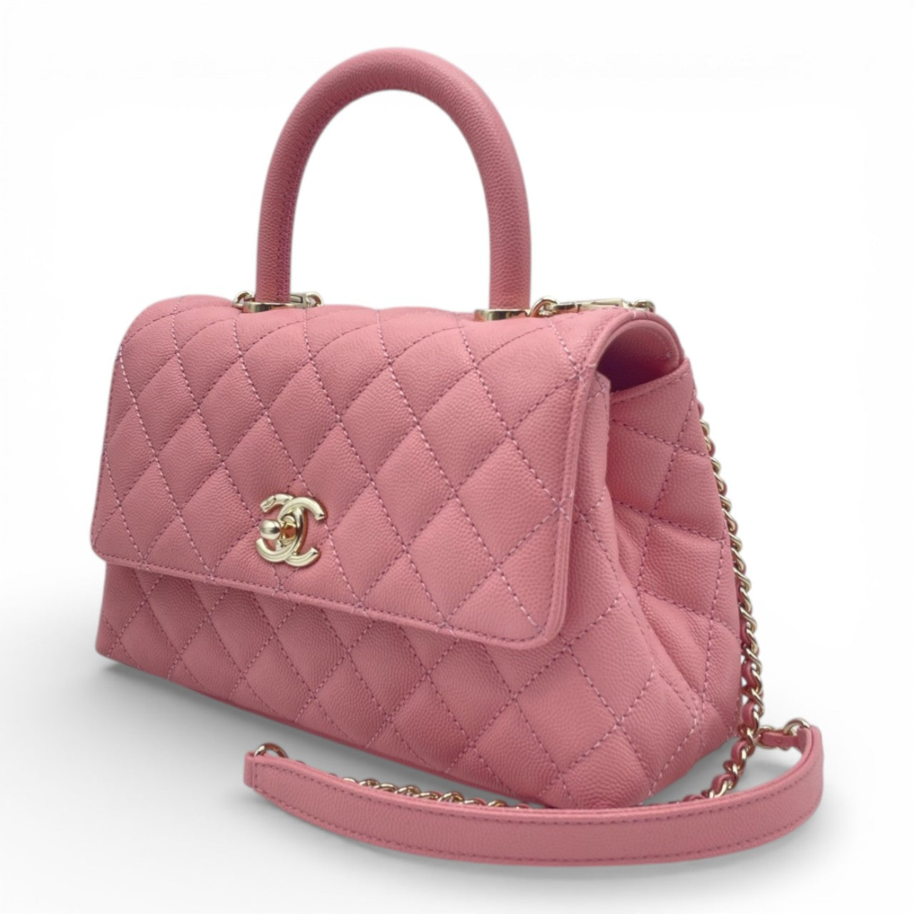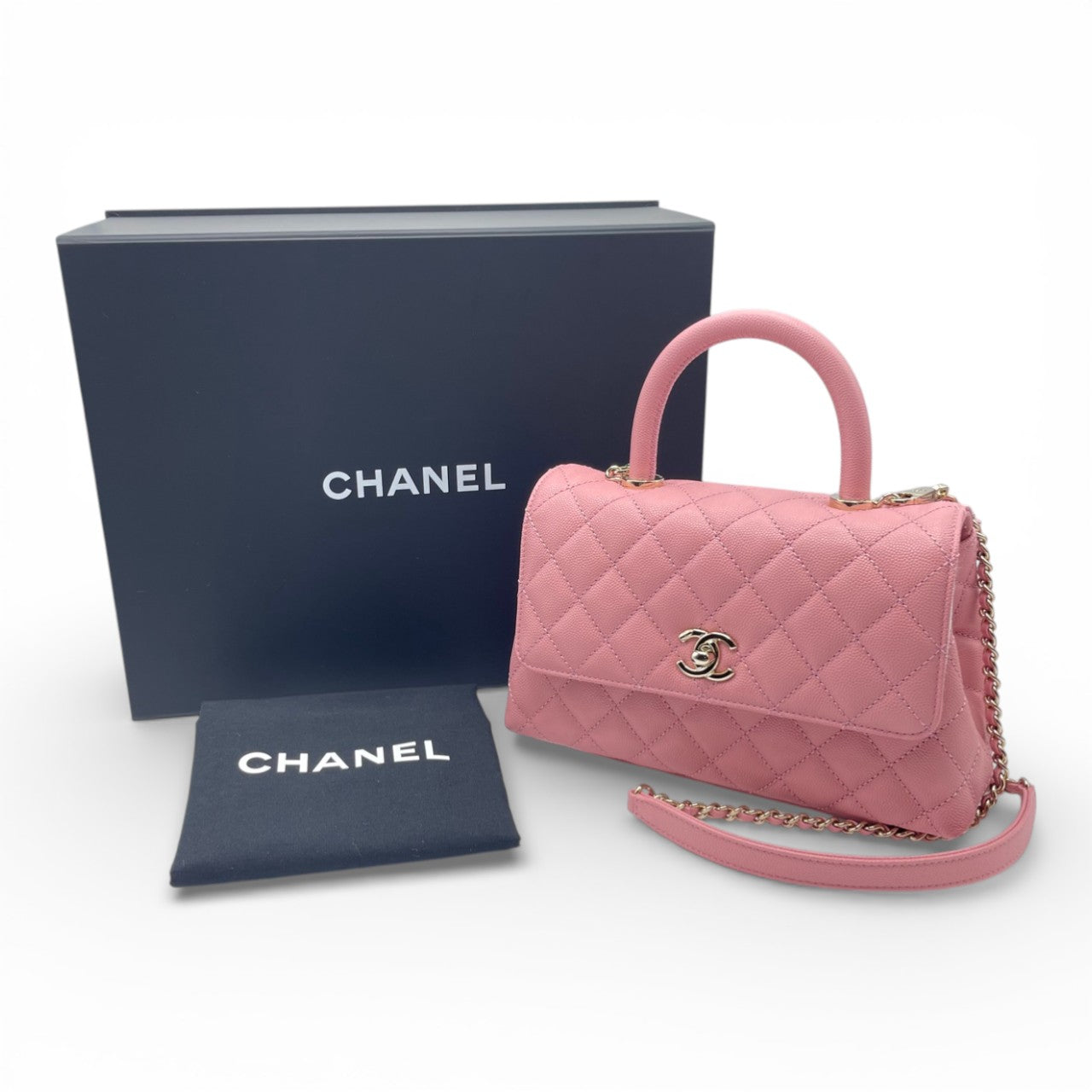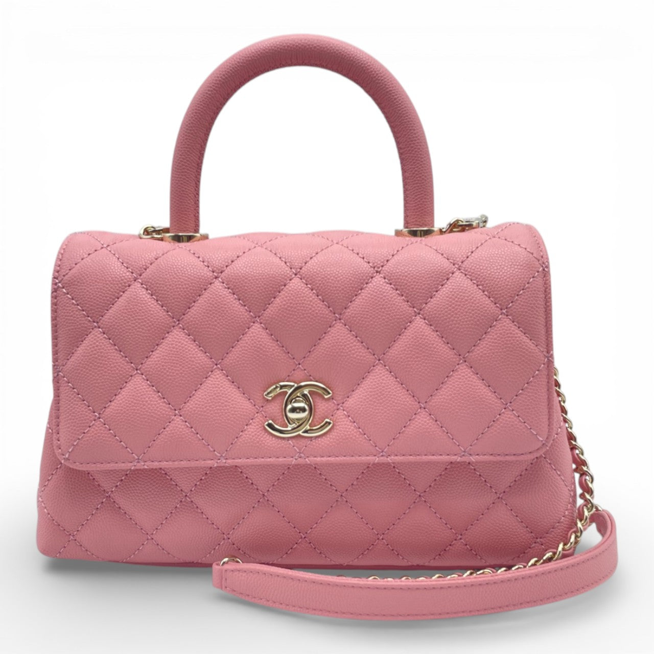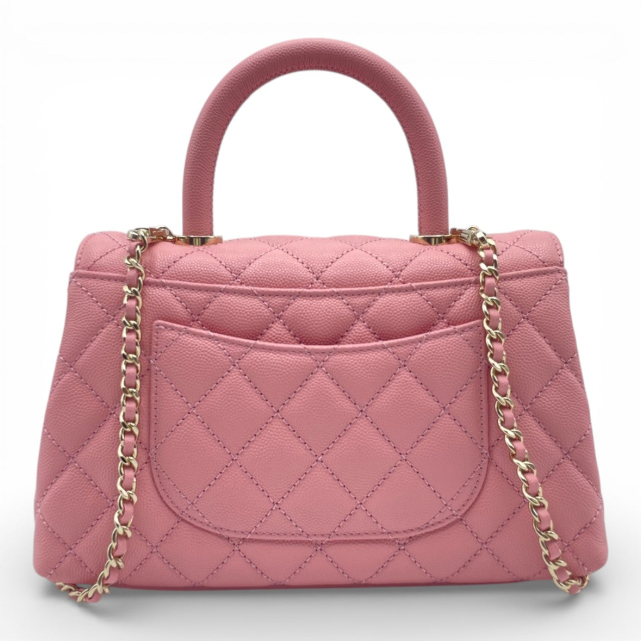 シャネルの中でも高い人気を誇る「ココハンドル」は、上品なサイズ感とエレガントな佇まいが魅力の一本です。傷が付きにくく、長く美しさを保てるキャビアスキンに、フェミニンな印象のピンク系カラーが絶妙にマッチ。コーディネートの主役としてはもちろん、デイリーからオケージョンまで幅広いシーンで活躍します。タイムレスなデザインのためトレンドに左右されにくく、初めてのシャネルにも、コレクション買いにも自信を持っておすすめできる逸品です。
