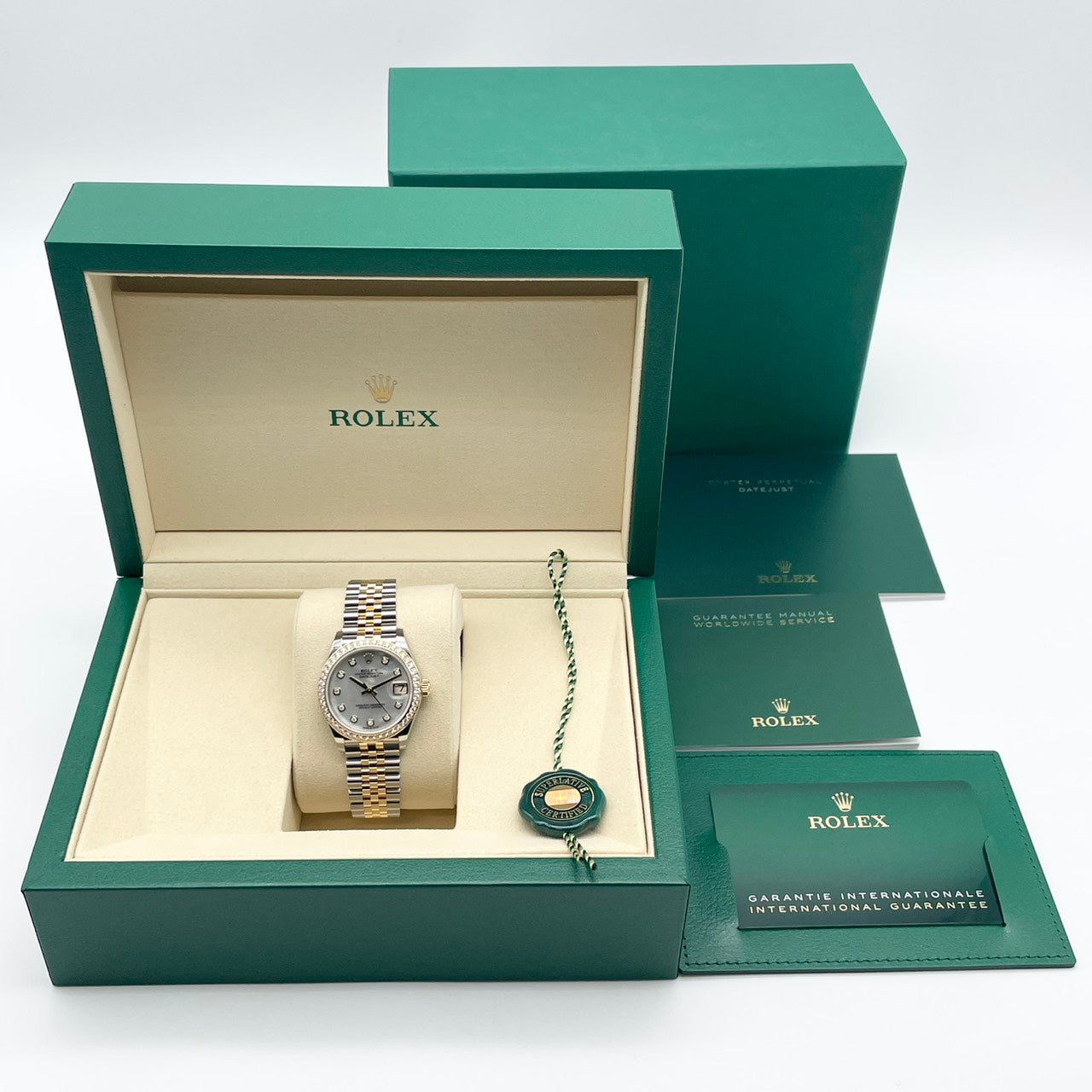 ロレックスの王道コレクション「デイトジャスト」の中でも、31mmサイズは上品さと実用性のバランスに優れた一本です。ホワイトシェル文字盤は光の角度で表情を変え、さりげなくも確かな高級感を演出。ステンレススチールとイエローゴールドのコンビ素材が、日常からフォーマルシーンまで幅広いスタイルにマッチします。ダイヤモンドベゼルならではの華やぎがありつつ、品良く手元を彩るため、初めての高級時計としても、ワンランク上の一本としても非常におすすめのモデルです。