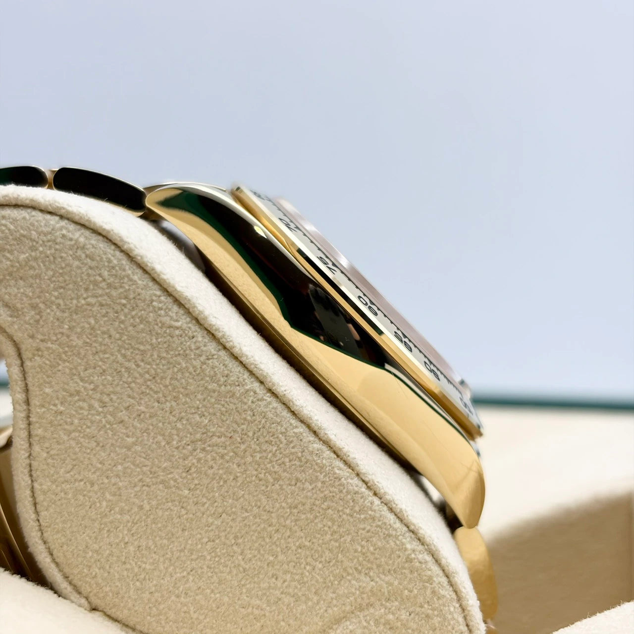 ロレックス スポーツモデルの頂点に君臨するデイトナ116508。ずっしりとした18Kイエローゴールドケースに、妖しく輝くゴールデンブラックダイヤルを組み合わせた一本は、ラグジュアリーとスポーティさを見事に両立させた名作です。インダイヤルのゴールドが立体感を生み、光の当たり方で表情を変える文字盤は、所有する歓びを日々感じさせてくれます。中古美品のためコンディションも良好で、資産性も高い人気リファレンス。腕元で確かな存在感を放つ、特別な一本をお探しの方にぜひお勧めしたいモデルです。