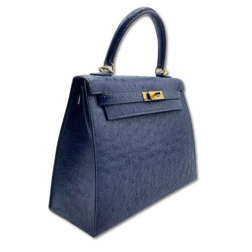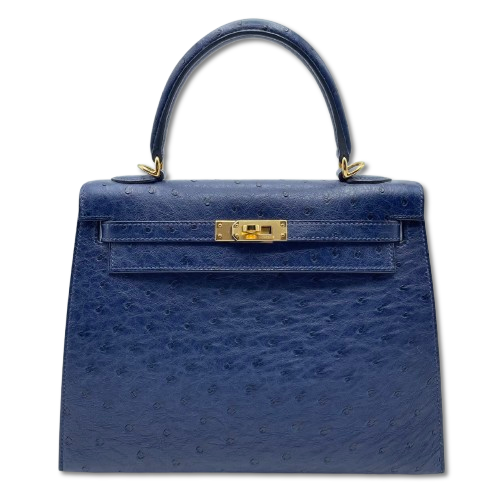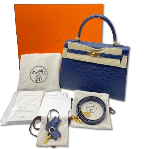 エルメスのケリーは台形のフォルムが特徴的で、着脱可能なストラップが付属しているため2Wayでお使いいたく事ができます。 高級感あふれるオーストリッチの質感と、ブルーアイリスの美しいカラーリングが、あらゆるシーンでエレガントな印象を演出します。 ビジネスシーンやパーティー、普段使いにもおすすめです。高い人気を誇るエルメスならではの品質をぜひご堪能ください。