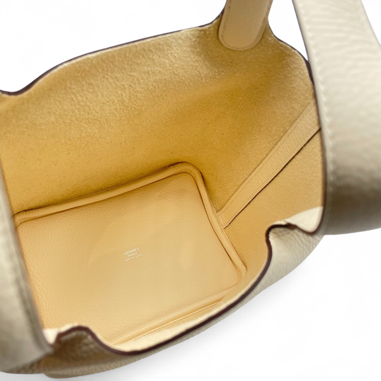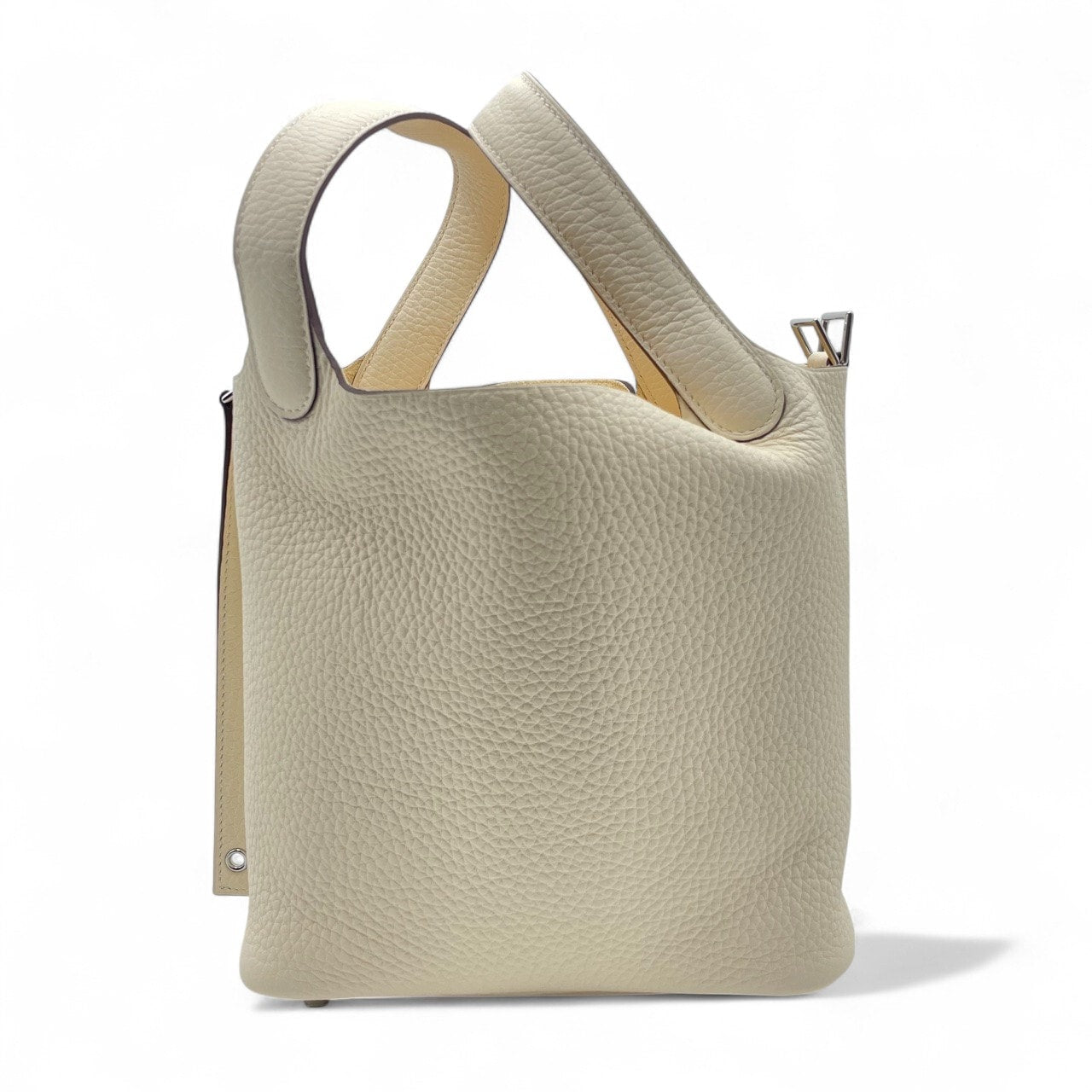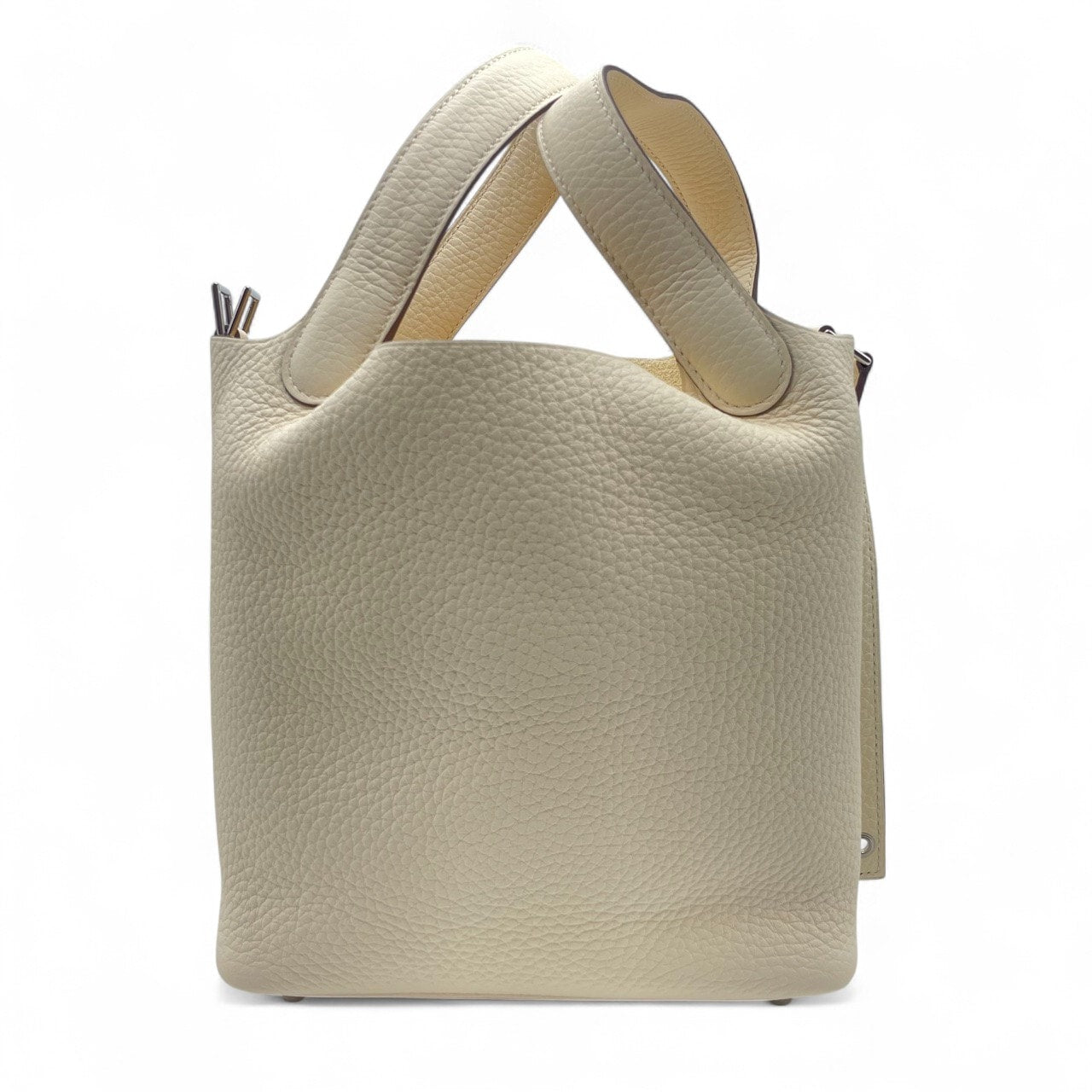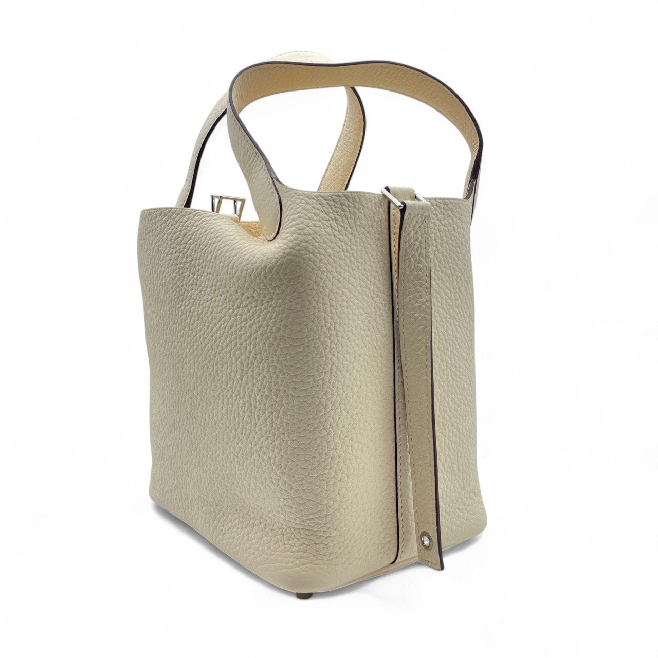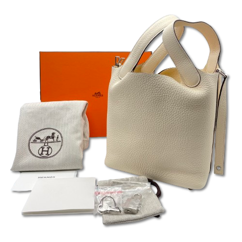 エルメスのピコタンロックは、その洗練されたデザインと最高級の素材で、エレガンスと機能性を兼ね備えたアイテムです。ナタカラーのトリヨンクレマンス素材は、柔らかく丈夫で、日常に贅沢さをプラスします。コンパクトなPMサイズは、日常の様々なシーンで活躍し、スタイリッシュなアクセントとして手元を引き立てます。シンプルでありながら、持つ人のスタイルをさりげなく主張し、特別な時間を演出する一品です。
