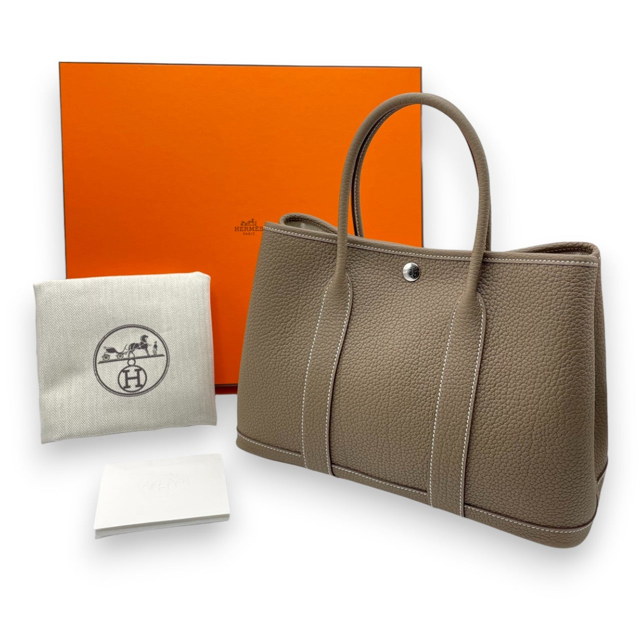 エルメスのガーデンパーティは、オンオフ問わず活躍する万能トートとして、高い人気を誇る定番モデルです。やわらかく上質なネゴンダレザーは、ふっくらとした質感と傷が目立ちにくい実用性が魅力。エトゥープの上品なカラーは、どんな装いにも自然に溶け込み、持つ人の洗練されたセンスを引き立てます。日常使いしやすいTPMサイズながら、必要な荷物がしっかり収まる収納力も兼備。初めてのエルメスにも、ワードローブを格上げする一点としても自信を持っておすすめできるお品です。