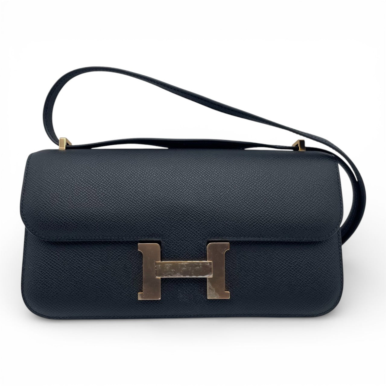 エルメスを代表するアイコンバッグ「コンスタンスエラン」。しなやかで傷が付きにくいエプソン素材に、どんなスタイルにも溶け込む気品あるブラックカラー「ノワール」が組み合わさり、ビジネスからオケージョンまで幅広く活躍します。25サイズは、必要なものをスマートに収めつつ、持つ人のシルエットを美しく見せてくれる絶妙なバランス。シャープなH金具が装いを引き締め、男性女性を問わず、ミニマルで洗練された印象を演出します。