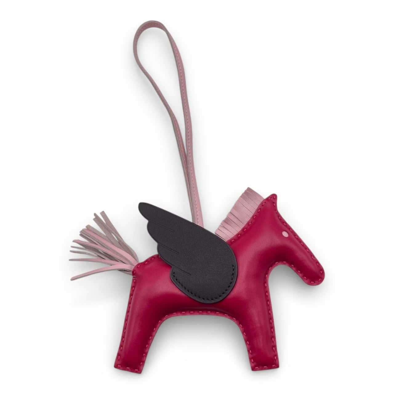 エルメス人気のペガサスチャームを、フランボワーズ/ローズサクラ/ルージュセリエの甘さと深みのある色合わせで仕上げた、とても愛らしい一品です。やわらかなアニョーミロが放つ上質なレザーの質感は、バッグに添えるだけでラグジュアリーな印象に。MMサイズは存在感がありながらも主張しすぎず、バーキンやケリーはもちろん、お手持ちのさまざまなバッグを一瞬で華やかにアップデートしてくれます。中古美品のため、日常使いにも取り入れやすいお勧めのコンディションです。