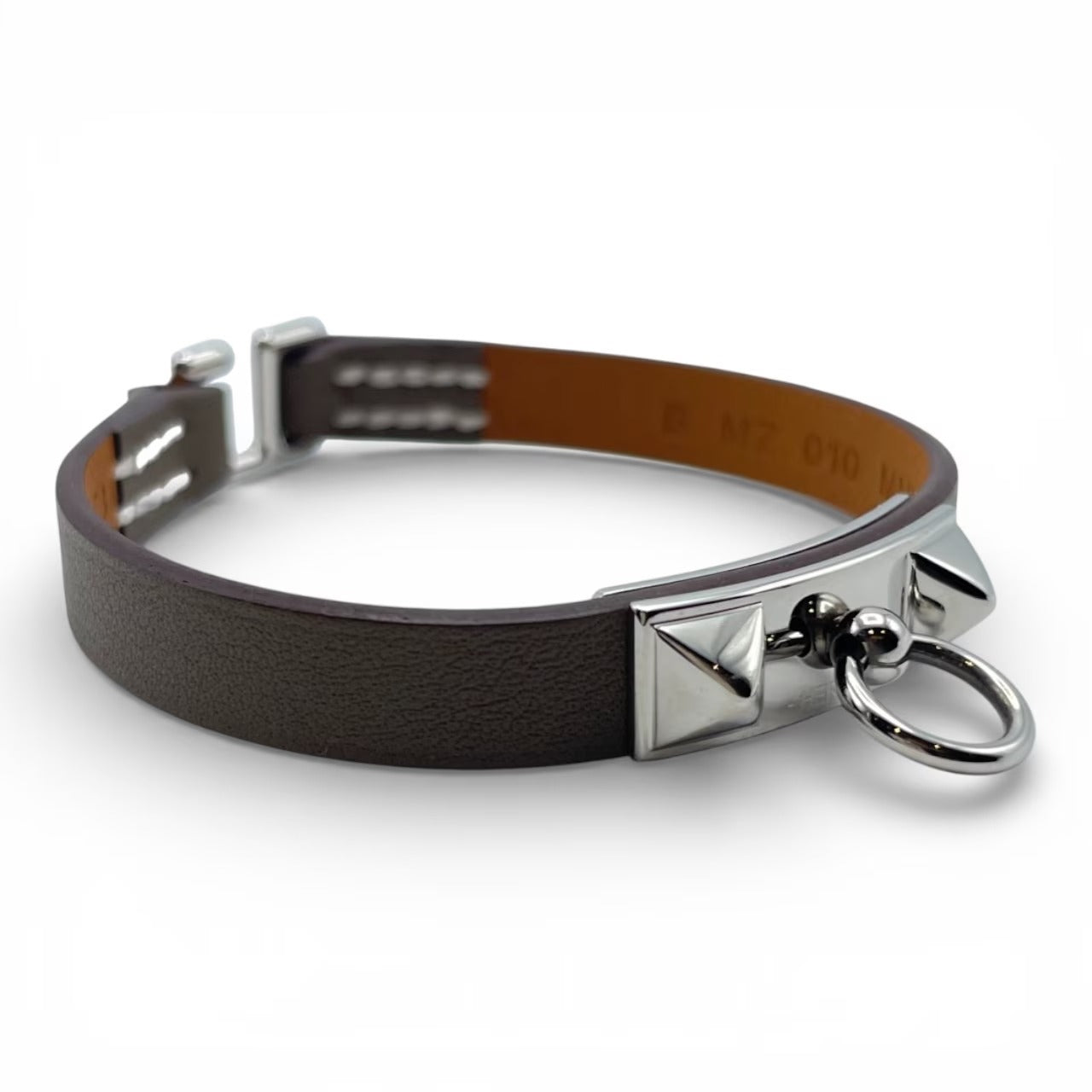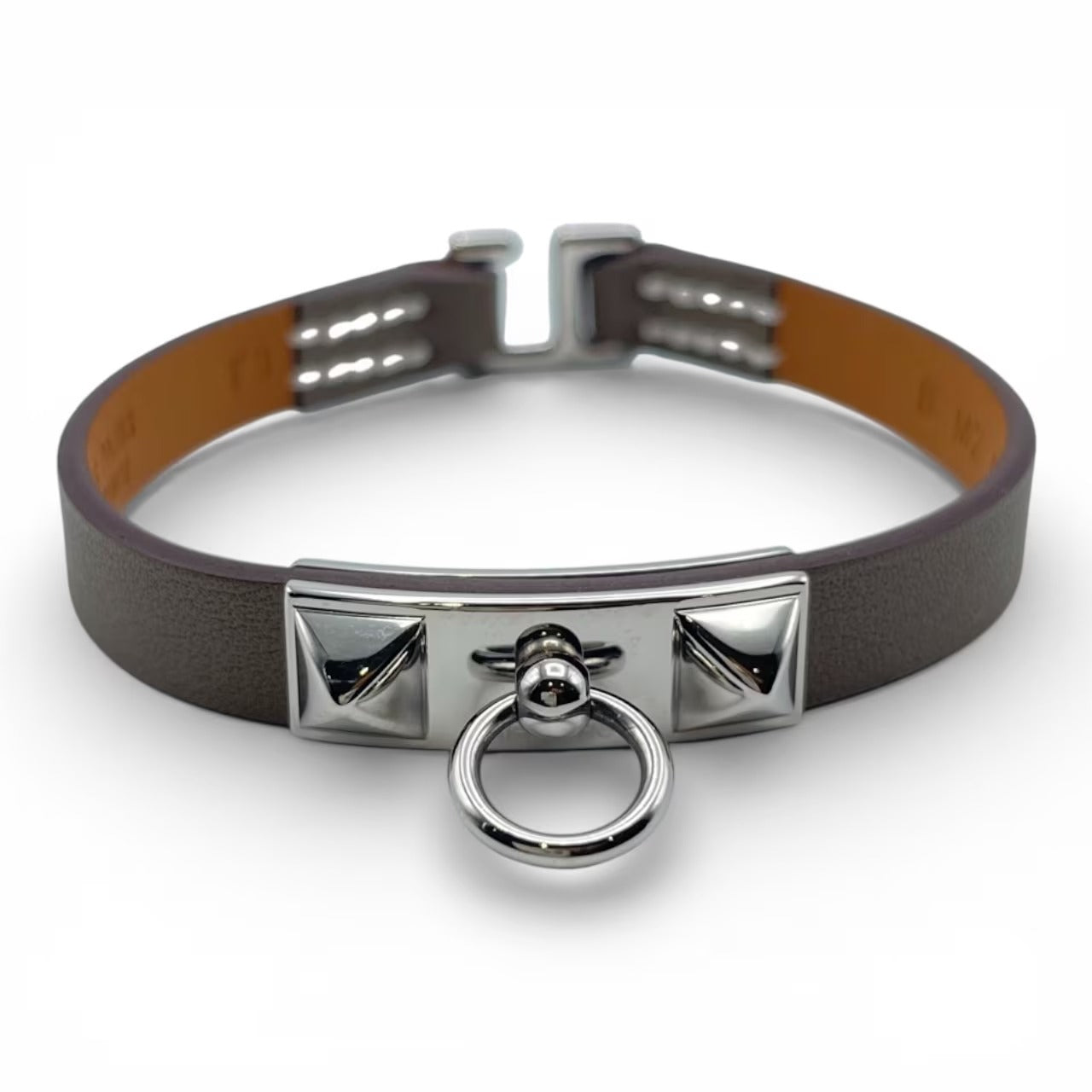 エルメスを代表するアイコニックなジュエリー「ミニ・リヴァル」ブレスレット。モード感と上品さを見事に両立し、ビジネスシーンにもオフスタイルにも溶け込みます。スタッズとリングの力強いデザインは、一本取り入れるだけでコーディネートをシャープに引き締め、女性には凛としたエレガンスを、男性には洗練されたエッジを与えてくれます。時計や他のジュエリーとの重ね付けもしやすく、長く愛用いただける逸品です。