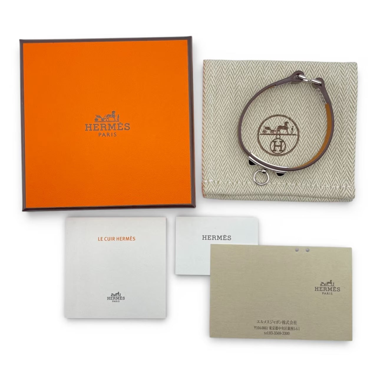 プレオウンドエルメス レザーブレスレット ミニ・リヴァル T3 ノワール スイフト シルバー金具 B刻印