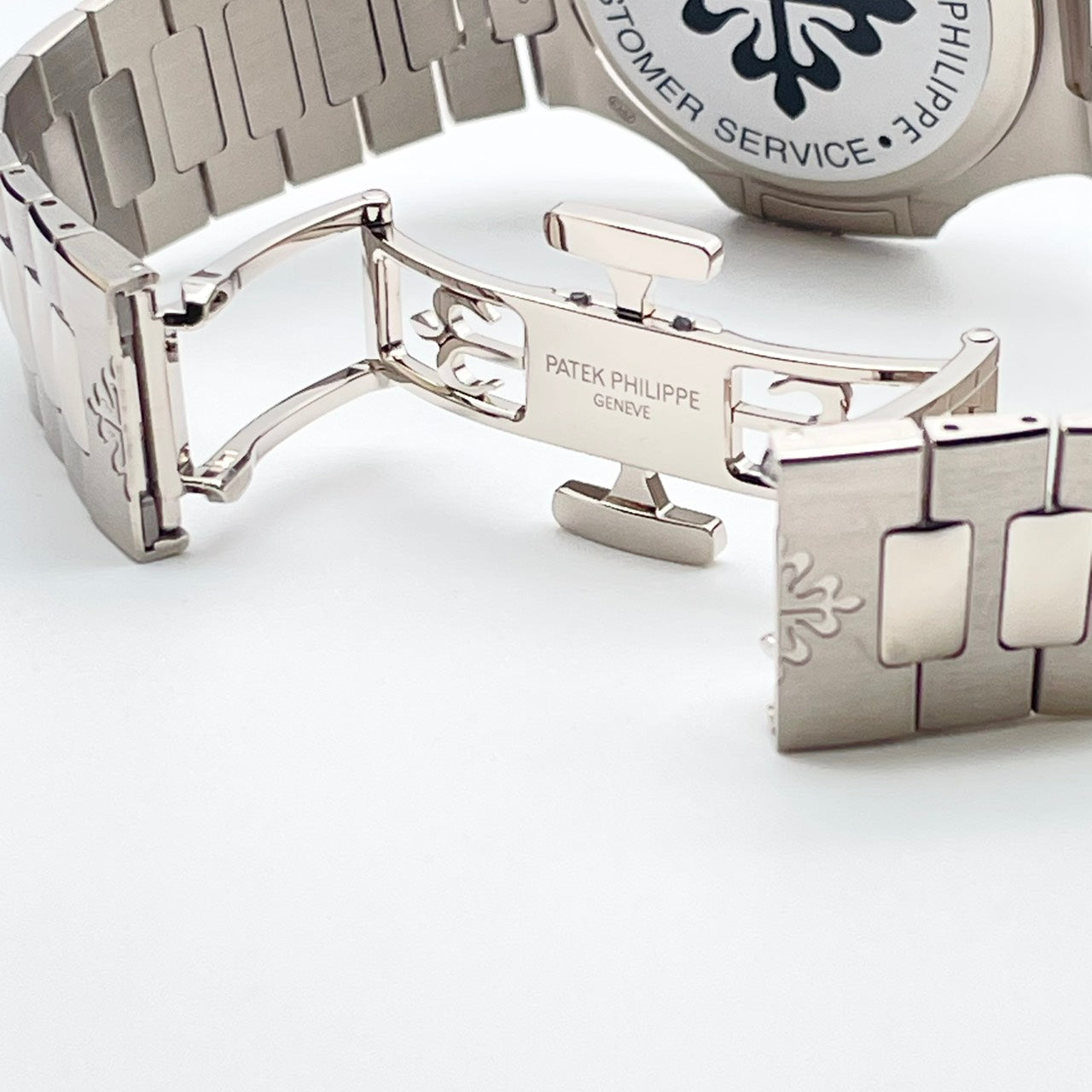 在百达翡丽顶级运动系列中,“鹦鹉螺5740/ 1g -001”特别稀有。 运动奢华与永久日历的高级机构相融合,可谓是终极的一款。 白金特有的优雅重量和蓝色表盘随光线角度变化的表情,令您的手更显知性优雅。 40mm的绝妙尺寸感无论正装还是休闲装都相容性出众,被称为“一生的东西”是相称的存在感。 如果您正在寻找未使用的型号,这是一个不容错过的机会。 一定要趁这个机会收藏兼具资产性与社会地位性的特别作品。